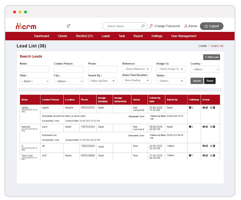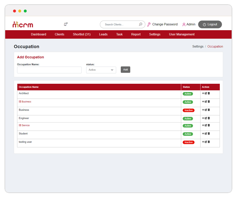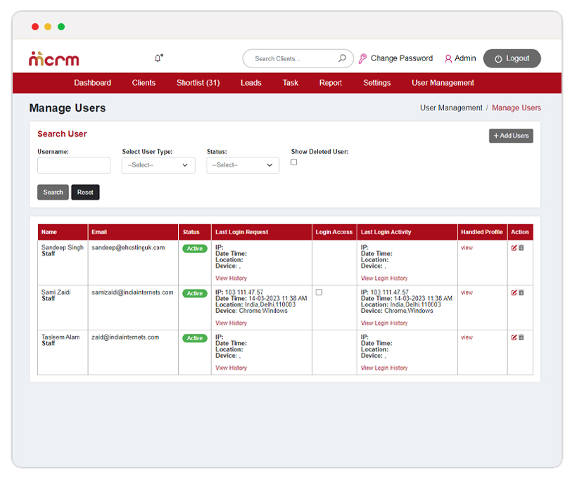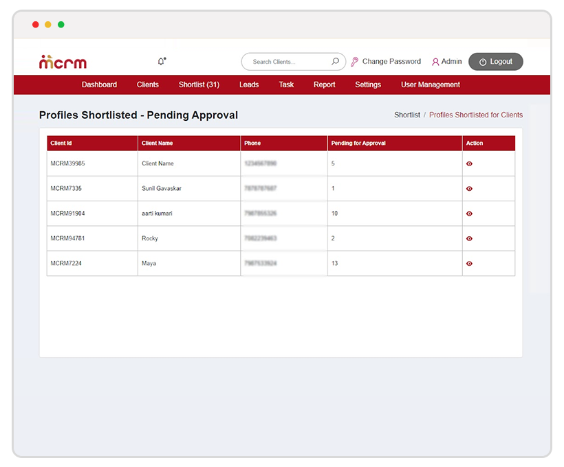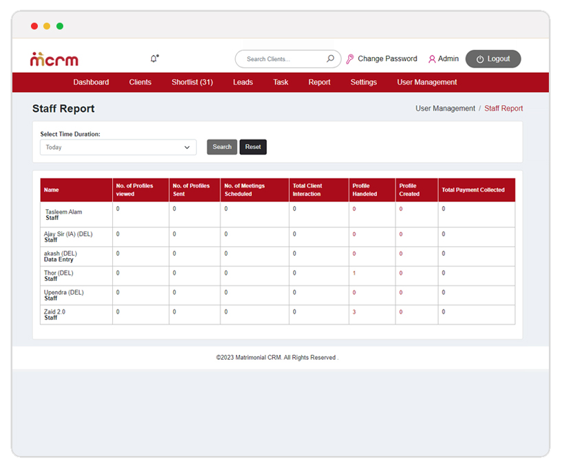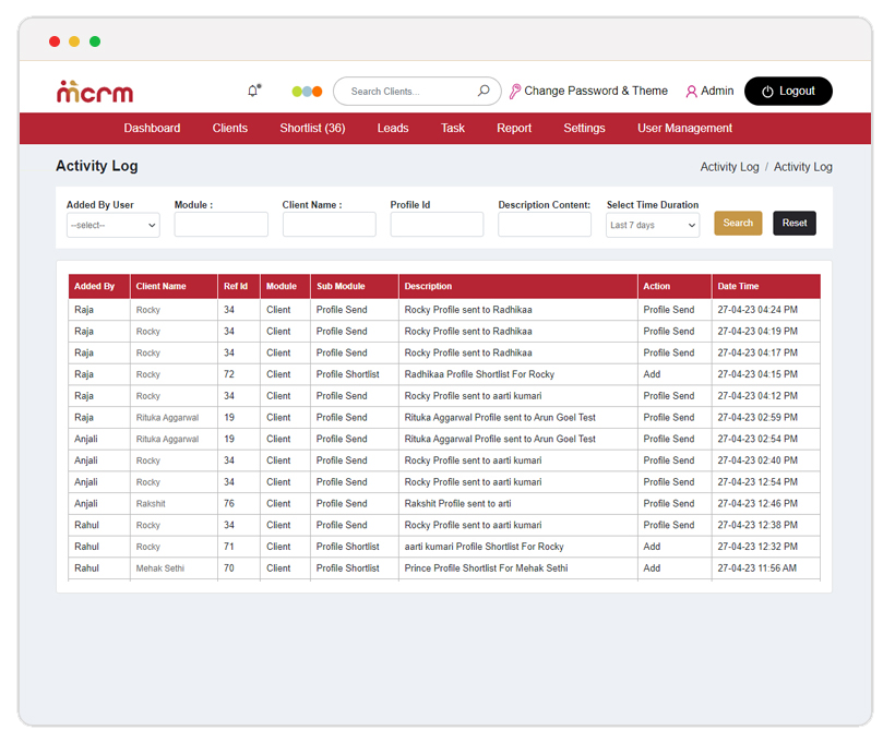 Matrimonial software is a CRM system used to manage the client details, shortlist the suitable matches based on client requirements and send the matches to the client from the Matrimony CRM software. Staff can create tasks and followups with the client. The task becomes visible to them when its due and the staff can take suitable action. Match making software purchase or Matrimony software purchase makes the life easy for marriage bureau, marriage agency or matrimonial management software company who provide personalised Indian matrimonial services.